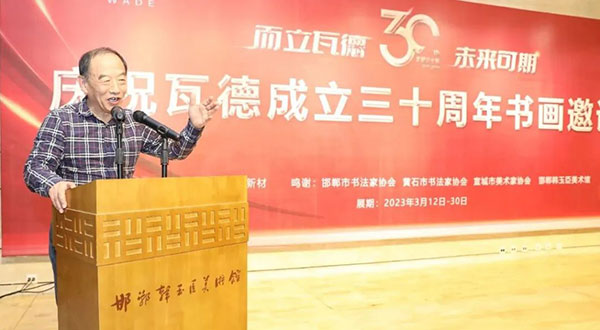 紙書秦磚,墨透漢瓦。 而立瓦德,未來可期。 這是邯鄲藝術(shù)界一場別開生面,前所未有的書畫聯(lián)誼大展。來自邯鄲、黃石、宣城三地書法家、美術(shù)家匯聚古城,展出了他們精心創(chuàng)作的書畫作品。 3月14日15:18開幕式正式開始。