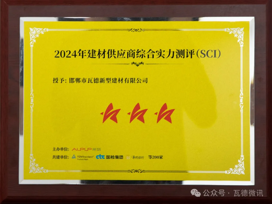 2024年4月8日,“5光同行 聚星閃爍”采筑聯(lián)合者大會在重慶順利召開,現(xiàn)場重磅發(fā)布2024年供應(yīng)商綜合指數(shù)SCI測評結(jié)果,獲全場數(shù)百位政府單位、采購商、供應(yīng)商、行業(yè)協(xié)會、領(lǐng)域?qū)<业赛c贊認可。 瓦德新材在本次SCI綜合測評中獲評“三星供應(yīng)商”。本次SCI測評共有2600余家參評單位,其中僅197家